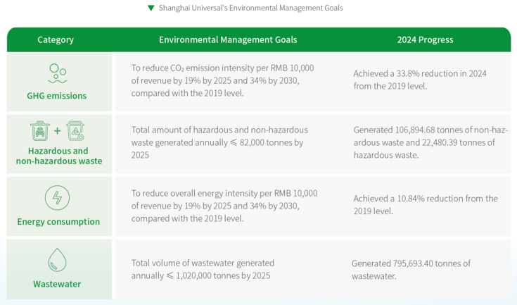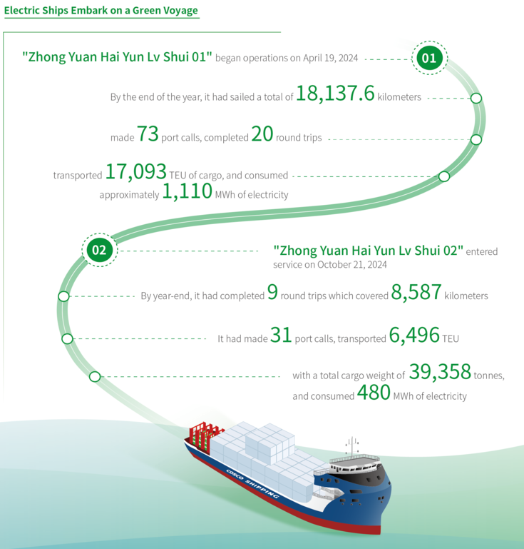 (1)Green Container Manufacturing Shanghai Universal integrates environmental management goals into its broader corporate strategy, ensuring that environmental considerations are embedded in strategic decision-making. This helps strengthen the alignment between business operations and sustainability principles. The company formulates practical environmental management plans, with targeted actions across key areas such as resource efficiency, waste management, and pollution control. In addition, annual safety and environmental responsibility statements are signed across all levels of the organization, clarifying roles and performance targets. A robust monitoring and evaluation mechanism is also in place to ensure effective implementation and ongoing improvement of environmental management efforts. To promote the low-carbon transition of the entire container supply chain, Shanghai Universal launched the world's first CFP & EPD platform for containers on October 8, 2023. The platform uses data graphs to analyze how raw material production processes and logistics transport modes impact the environment. It supports green procurement by encouraging the adoption of eco-friendly materials such as corner castings made from recycled steel, bamboo-wood composite flooring, and reusable containers for water-based paints, thus helping reduce carbon emissions at the source. The platform also conducts digital analysis of production inputs to dynamically evaluate operational efficiency and optimize workflows and process design. These efforts drive technological upgrades and contribute to further reductions in CO₂ emissions. By the end of 2024, the platform had connected 95 enterprises across the industry chain. In collaboration with third-party institutions such as the CCS, it had issued 15 CFP-certified and 25 EPD-certified products, contributing to low-carbon development across the industry chain. At the Intermodal Asia 2024, Shanghai Universal introduced the first low-carbon container label, which received wide recognition from customers. More than 36,000 containers bearing the label have since been transported across global markets. Shanghai Universal also launched a series of ECER training programs to ensure that relevant managers and equipment operators are well-versed in relevant knowledge and operational practices. The company continues to strengthen comprehensive talent training in ECER, taking a structured approach to building a skilled and specialized workforce. Shanghai Universal and its affiliated container factories encourage employee participation in environmental management and maintain close communication with government agencies, industry organizations, and third-party partners to advance joint environmental initiatives. In 2024, the company held ECER campaigns, such as "Energy Awareness Week" and "Low-Carbon Day" to promote relevant national guidelines, policies, laws, regulations, industry standards, and scientific knowledge, while enhancing employee awareness of ECER. In 2024, Shanghai Universal conducted 22 ECER training sessions, recording 8,045 participations in total. (2)Green Shipping COSCO SHIPPING Development is committed to becoming a world-class shipping and finance service operator with COSCO SHIPPING characteristics. Upholding industry-finance integration and finance as an enabler of industry growth, the Company is strengthening its shipping leasing portfolio by investing in newer, greener vessels with advanced environmental performance and high operational efficiency. This asset-centric approach underpins its transformation into a value-oriented investor and innovative service provider in industry-finance integration. In response to the global energy transition, the Company is actively capturing opportunities in clean technology innovation. By increasing investment in this area, we strengthen our resource distribution across the clean energy value chain, driving low-carbon transition in the shipping industry and enhancing sustainability.